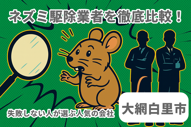 大網白里市でネズミの被害に悩んでいませんか? 天井裏の物音やフンの発見は、すでに侵入されているサインかもしれません。 ネズミは繁殖力が高く、放置すると配線をかじったり、食品を汚染したりと被害が拡大します。 そのため、早めの駆除と再発防止対策が欠かせません。 この記事では、大網白里市でネズミ駆除をする場合の料金相場や業者選びのポイント、見積もり時の注意点まで、初めて依頼する方でも失敗しないための情報を徹底解説。 大網白里市対応のネズミ駆除業者で、特に口コミ評価が高く、対応力に優れた業者を6社厳選して紹介しま ...