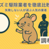 駆除ザウルス | 4.7 124件 | 最短即日対応 | 状況や作業内容に応じて変動 | 最長10年間保証 | ・公式サイトに簡単見積シミュレーションあり ・30,000件以上の相談実績 ・損害補償保険加入 |